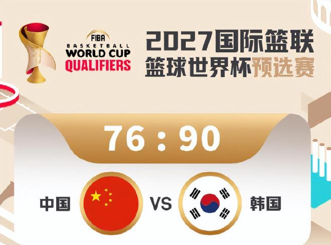 北京时间2025年12月1日消息。男篮世预赛亚洲区资格赛,窗口期比赛今天晚上一场焦点战:中国男篮客场VS韩国队。经过4节激战,中国队再次输给韩国队。比分为:90-76!今天晚上,中国队在