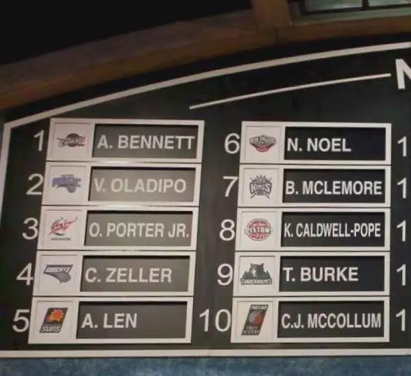 话说13届选秀真是“人才辈出”,堪称史上最糟糕一届选秀,状元本内特,榜眼奥拉迪波,探花奥托-波特......不过字母哥也是13届的,首轮15号秀。