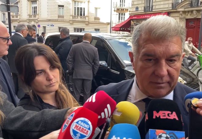 雷速体育9月22日讯 2025年金球奖颁奖典礼,将在巴黎的夏特莱剧院举行。巴萨主席拉波尔塔已经抵达,他接受了记者们的简短采访。