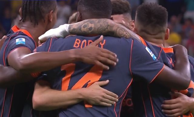 第14分钟,国米打破僵局。主队反击,苏西奇在禁区内接球,他吸引防守球员后,果断传给迪马尔科,后者第一时间就脚弓推射,最终把球打进近角,国米1-0领先。