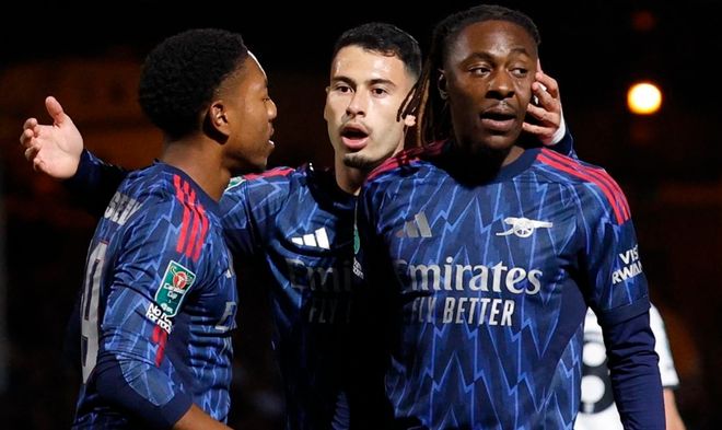 英联杯第3轮的一场比赛展开争夺,阿森纳做客挑战维尔港。阿森纳在联赛取得3胜1平1负的战绩,排名第2,仅次于利物浦。在上一场比赛,阿森纳遭遇曼城,结果凭借最后时刻的进球才艰难拿到一场平局。如今来到英联杯赛场,阿森纳面对的是英甲排名第19的鱼腩球队维尔港。结果没有任何意外,阿尔特塔率领阿森纳轻松拿下!